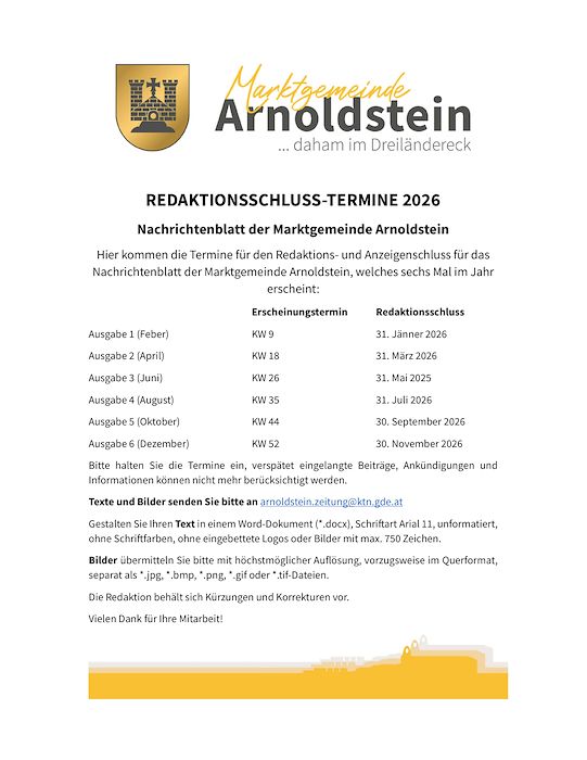 REDAKTIONSSCHLUSS-TERMINE 2026