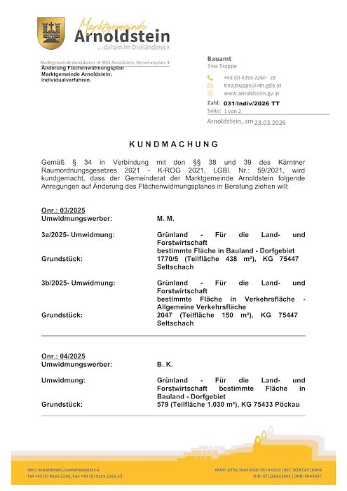 Kundmachung – Änderung des Flächenwidmungsplanes